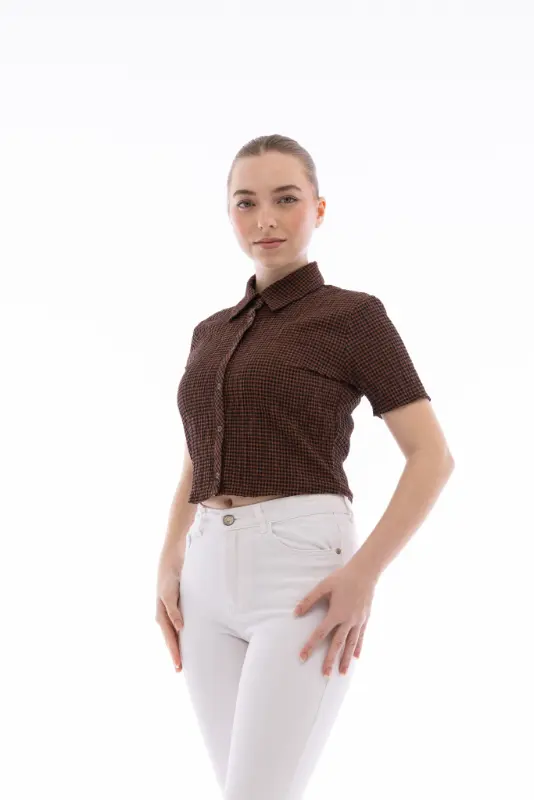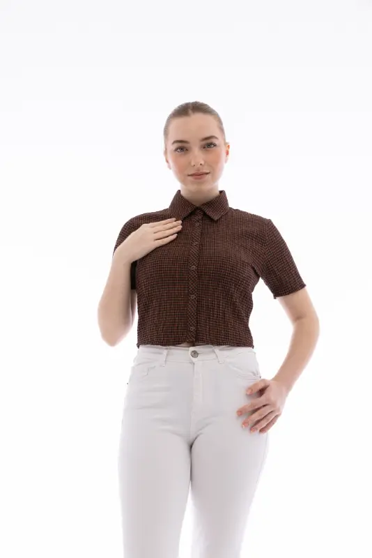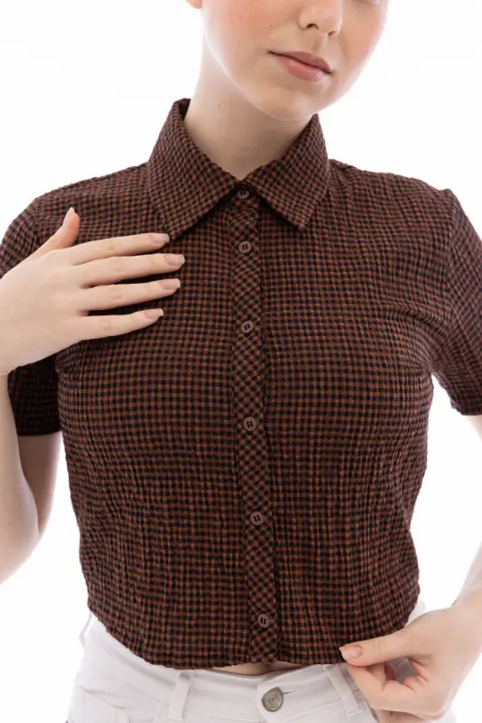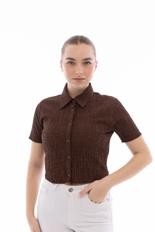 Kadın Gofreli Crop Gömlek