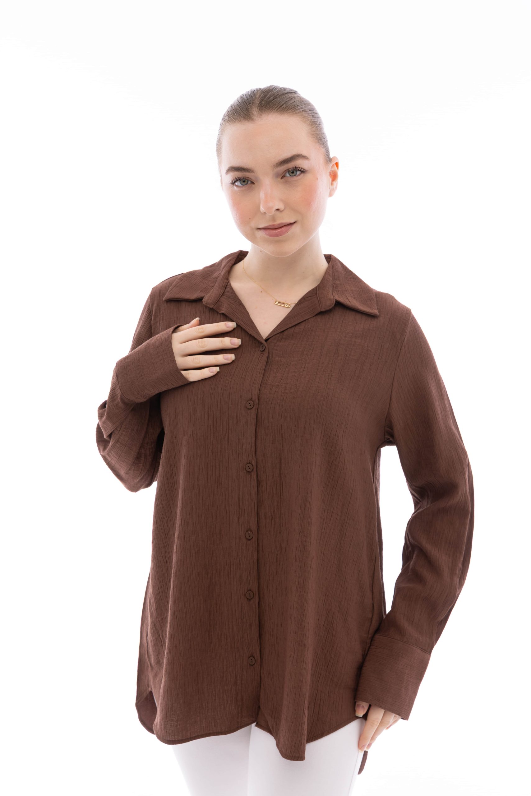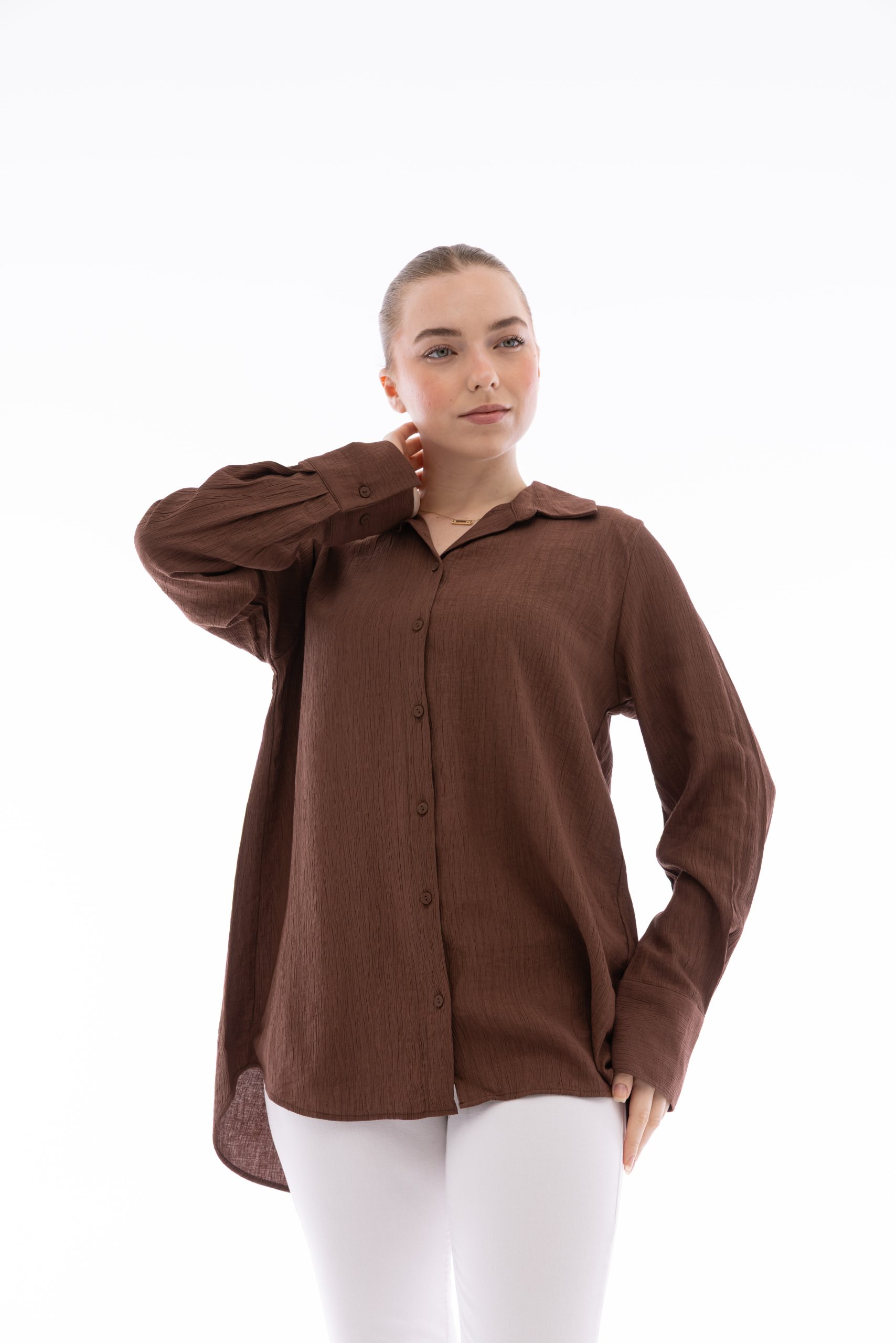 Şıklık ve konforu bir araya getiren bu tunik gömlek, rahat kesimi ve modern kaçık yaka tasarımıyla dikkat çeker. Hafif ve nefes alabilen kumaşı sayesinde gün boyu konfor sağlar. Hem günlük kombinlerde hem de şık davetlerde rahatlıkla kullanılabilir. 36-48 beden aralığında mevcuttur. Şimdi sipariş verin!