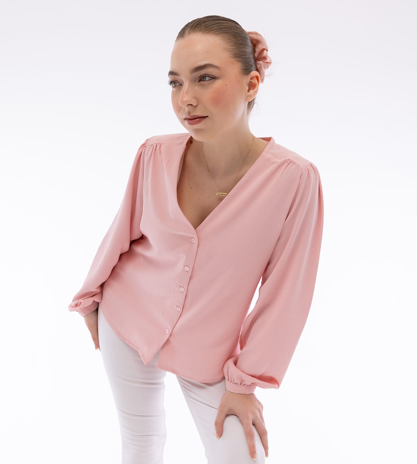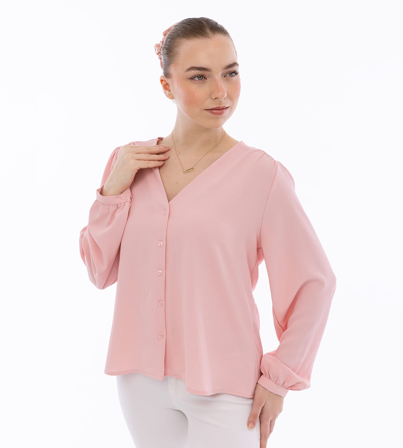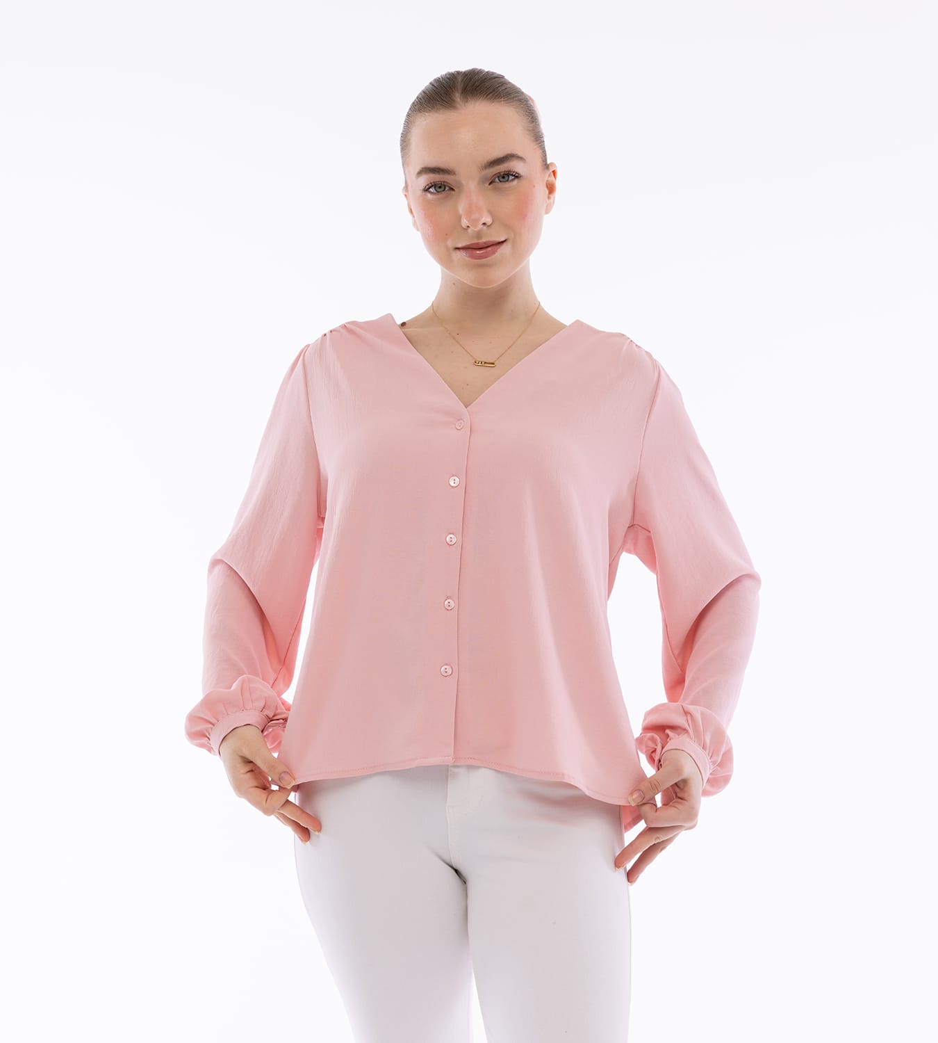 Şıklık ve konforu bir araya getiren bu viskon bluz, hafif ve nefes alabilen kumaşıyla gün boyu rahatlık sunar. V yaka ve büzgü detaylarıyla zarif bir görünüm kazandıran model, hem günlük kullanıma hem de özel davetlere uygundur. 36-46 beden aralığında mevcuttur. Şimdi sipariş verin!